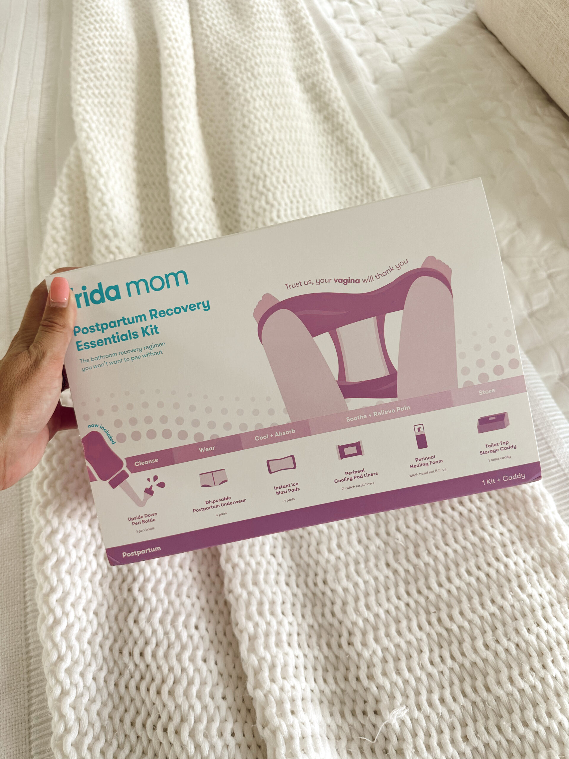 I put my postpartum basket together before heading to the hospital this time so it’s ready to go when we get home. It’s already fully stocked and set up next to the toilet in my bathroom.